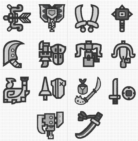 Full Set Of Monster Hunter Weapon Machine Embroidery Pattern Etsy